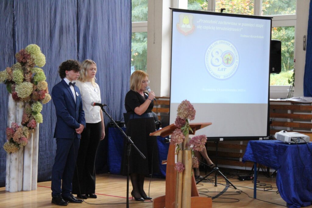 Słowa Tadeusza Kotarbińskiego skierowała do zebranych Monika Dźwigaj – dyrektor ZS w Przemkowie. Pani dyrektor na wstępie podkreśliła wagę historii i ogromne znaczenie zachowania w sercach tego co minione. Obchodzony jubileuszu skłoniły nas do sentymentalnej podróży w czasie. Kroniki i fotografie, które zdobiły szkolne korytarze nie pozwalają nam zapomnieć o pokoleniach tworzących wizerunek przemkowskiej „jedynki”.