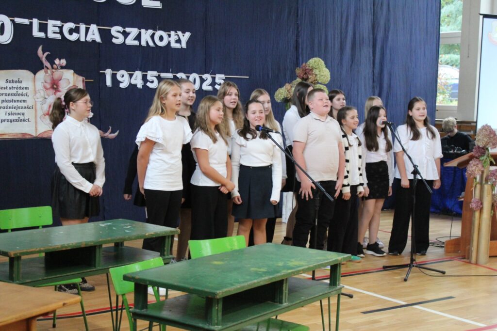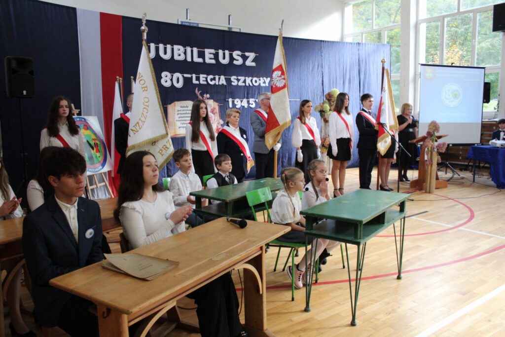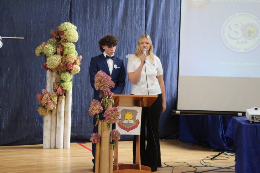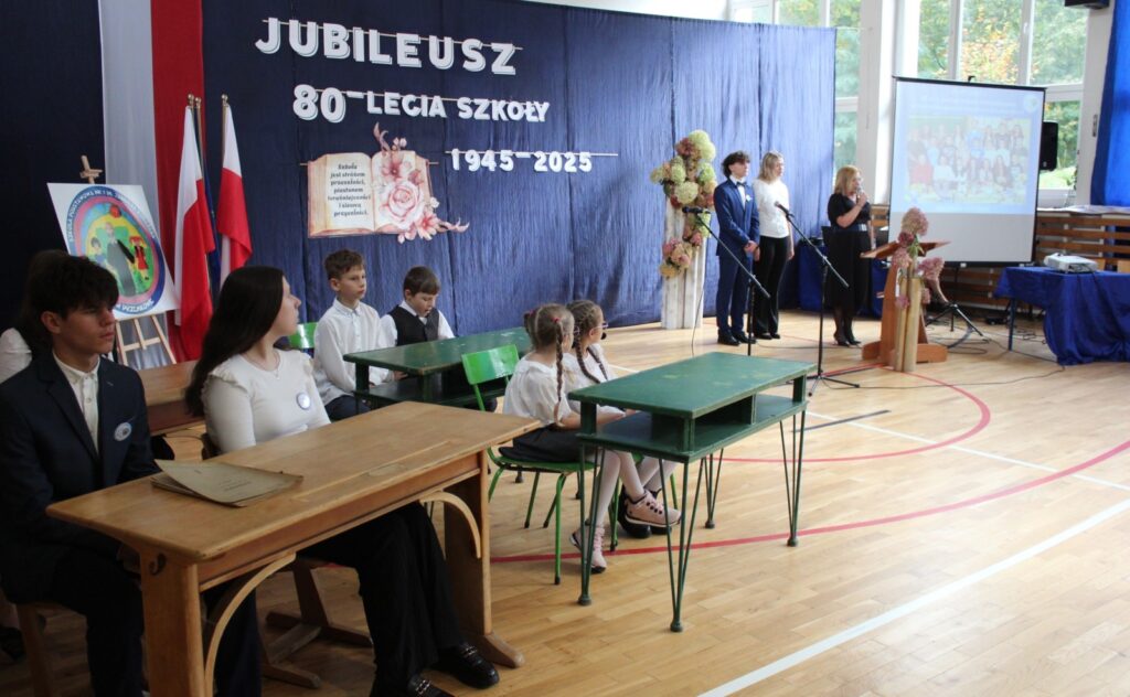 13 października 2025 roku w Zespole Szkół im. Ireny Sendler w Przemkowie, upamiętniliśmy 80-lecie istnienia Szkoły Podstawowej nr 1 im. Janusza Korczaka w Przemkowie. To było niezwykłe wydarzenie, pełne wspomnień i wzruszeń. Byli z nami: Burmistrz Przemkowa – Pan Jerzy Szczupak, Senator Rzeczypospolitej Polskiej – Pani Małgorzata Sekuła–Szmajdzińska, Starszy wizytator Dolnośląskiego Kuratorium Oświaty Pani Bożena Bendarska, Przewodniczący Rady miejskiej w Przemkowie – Pan Szymon Lewandowski, Radny Rady Powiatu Polkowickiego prof. Stefan Dudra, Zastępca Burmistrza Przemkowa – Pani Magdalena Kania, Proboszcz Parafii p.w. WNMP w Przemkowie Ks. kan. Jacek Makowiecki. Potwierdzenie wyjątkowości święta Szkoły stanowiła obecność na wydarzeniu byłych dyrektorów SP nr 1 w Przemkowie. Gościliśmy Panie: Ewę Fabiańczyk, Janinę Szczupak i Ewę Skrypak oraz Dyrektora SP nr 3 w Przemkowie pana Zygmunta Kearneya. Nasze zaproszenie licznie przyjęli nauczyciele i pracownicy – realizujących się zawodowo dawniej i dziś w Szkole Podstawowej nr 1 i w Zespole Szkół w Przemkowie. Powitaliśmy również wyjątkowych absolwentów naszej podstawówki – szanowne grono profesorskie: prof. Ryszarda Rybskiego, prof. Stefana Dudrę, prof. Sylwię Fabiańczyk – Makuch, prof. Krzysztofa Pilarza oraz piłkarza Krzysztofa Drzazgę. Świętowali z nami również Radni Rady Miejskiej w Przemkowie, dyrektorzy i kierownicy jednostek organizacyjnych Gminy Przemków, prezesi lokalnych organizacji pozarządowych oraz uczniowie i rodzice naszych uczniów.
