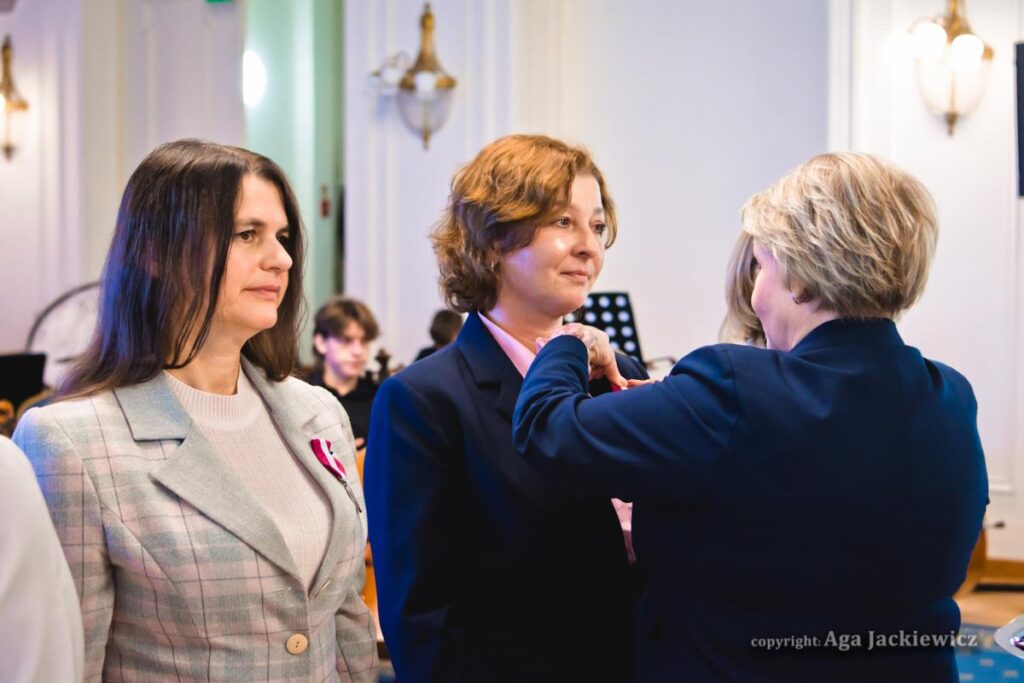 W imieniu Prezydenta RP Ewa Skrzywanek – Dolnośląski Kurator Oświaty wspólnie z Wojewodą Dolnośląskim Anną Żabską wręczyła odznaczenia i nagrody wyróżnionym pracownikom oświaty.