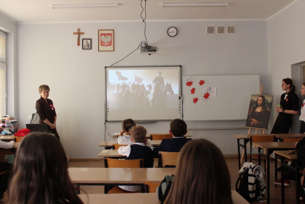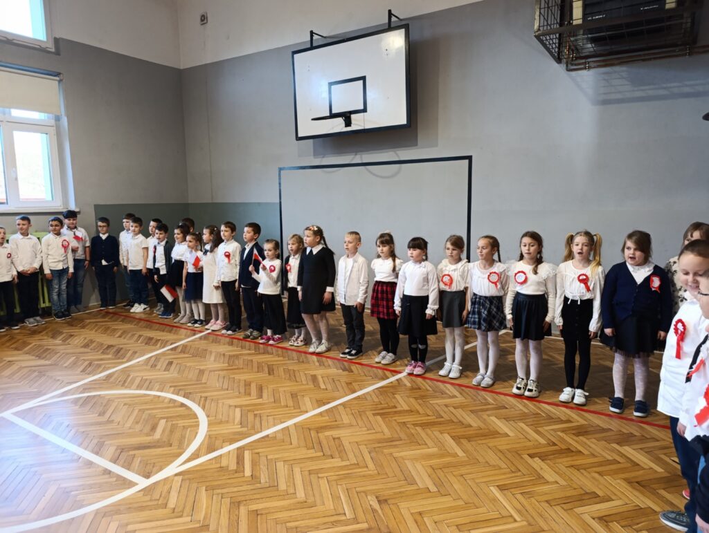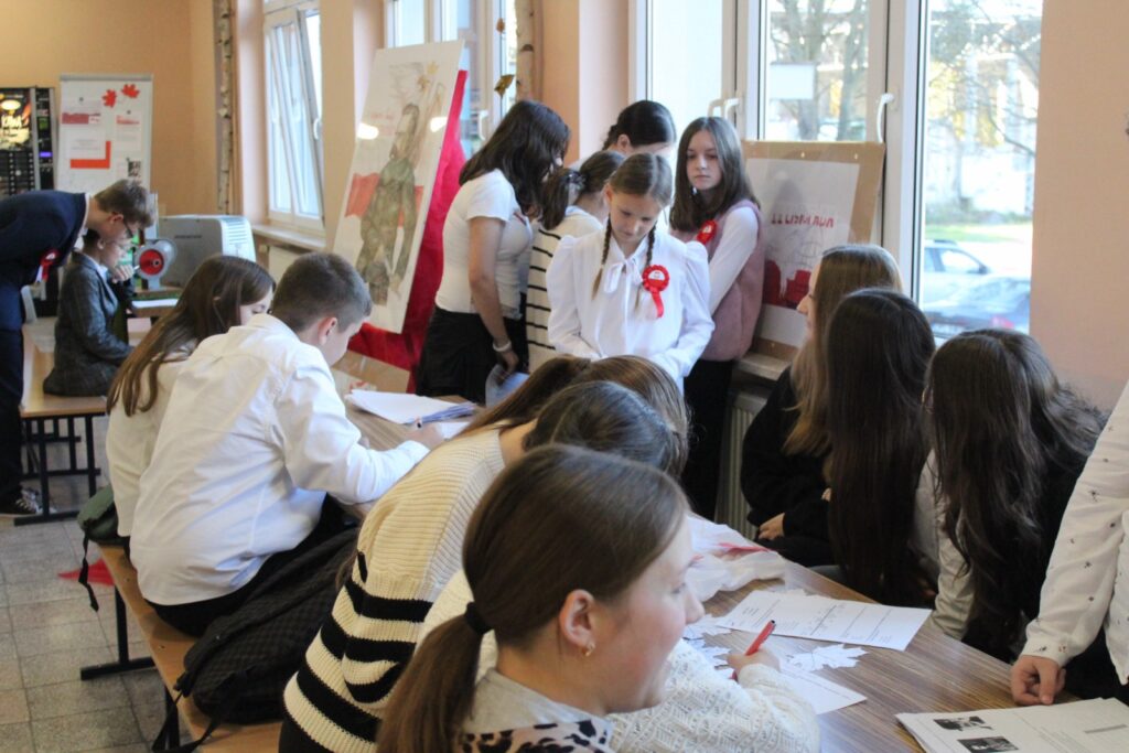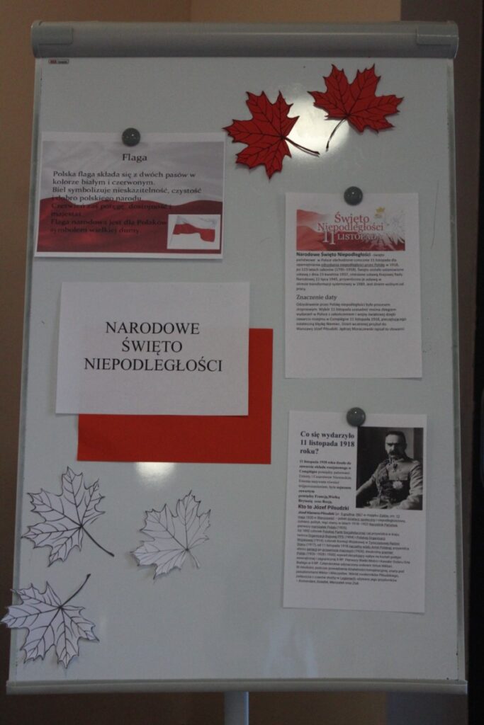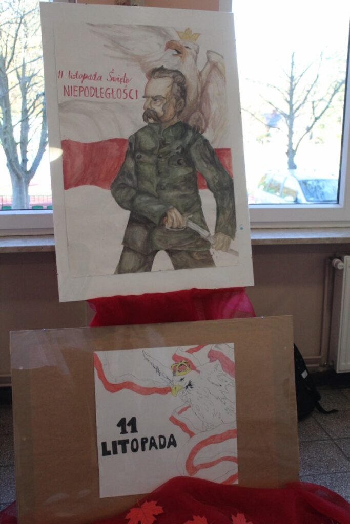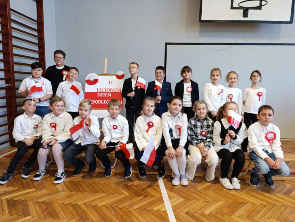 Na szkolnym holu prezentowano plakaty i informacje historyczne związane z obchodami Narodowego Święta Niepodległości. Dużym zainteresowaniem wśród młodzieży cieszyły się quizy dotyczące odzyskania niepodległości przez Polskę. Wśród zadań były rebusy, labirynty, krzyżówki i zadania otwarte. Klasa 04 zamieniła się w sale kinową, gdzie wyświetlano filmy pt. „Niezwyciężeni. Czas próby.” oraz „Gra o Niepodległość” , które są opowieścią o niezłomnej walce, poświęceniu, nadziei i marzeniach Polaków. Nie zabrakło również pieśni patriotycznych w wersji karaoke. W organizację tegorocznych obchodów szczególnie zaangażowali się uczniowie klasy 6b oraz 8a pod opieką nauczycieli Iwony Łopacińskiej-Skraba i Barbary Kowalskiej.