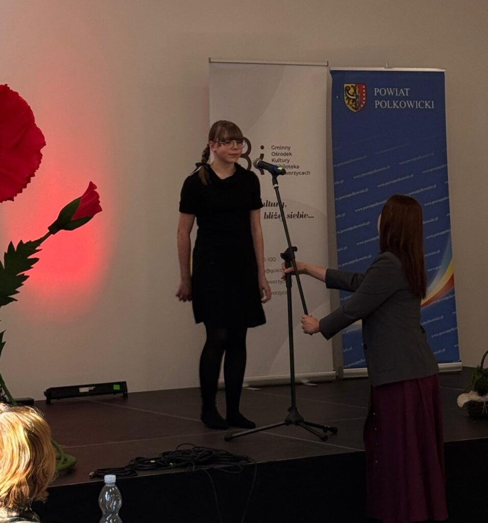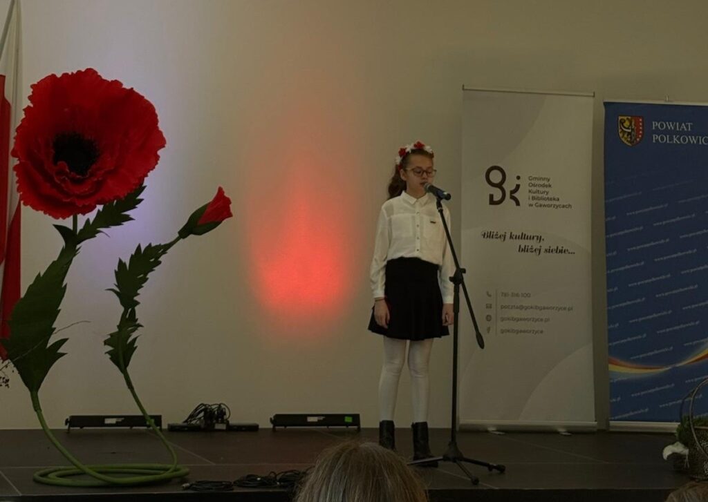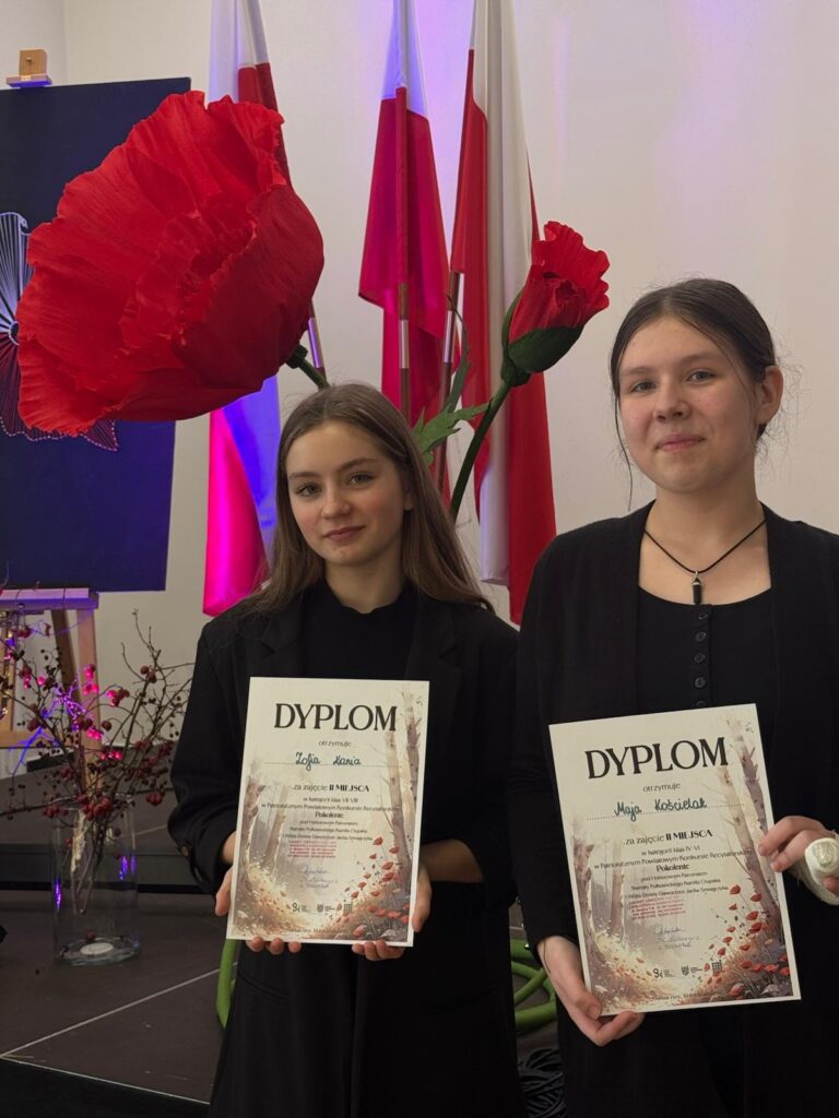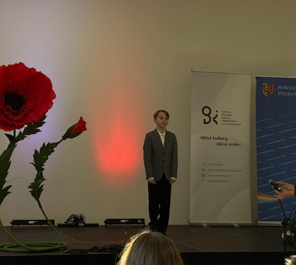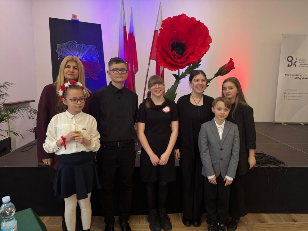 Uczniowie pięknie zaprezentowali się, recytując wiersze o tematyce patriotycznej. Z dumą informujemy o sukcesach uczennic naszej szkoły: w kategorii klas 7-8 Zofia Kania zajęła II miejsce, a Maja Kościelak zdobyła II miejsce w kategorii uczniów klas 4-6. Opiekunką uczennic jest pani Ewa Dworczyńska.