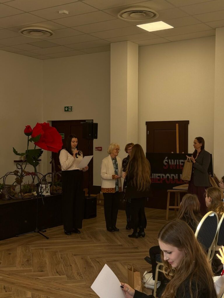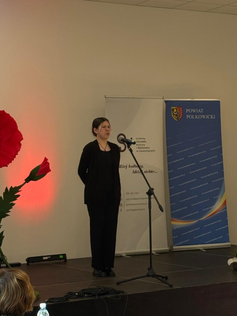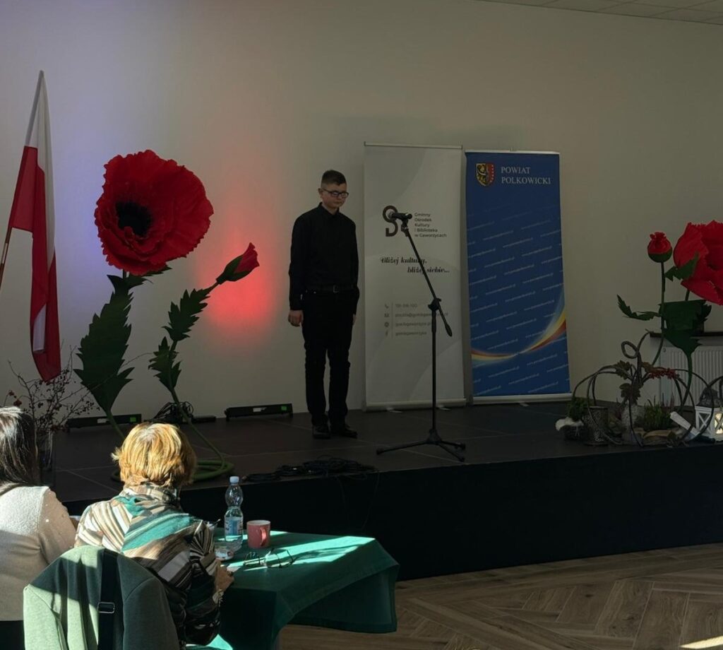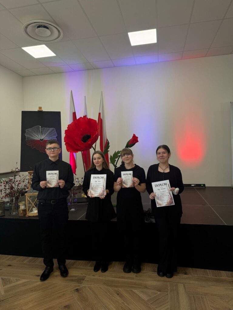 Uczniowie pięknie zaprezentowali się, recytując wiersze o tematyce patriotycznej. Z dumą informujemy o sukcesach uczennic naszej szkoły: w kategorii klas 7-8 Zofia Kania zajęła II miejsce, a Maja Kościelak zdobyła II miejsce w kategorii uczniów klas 4-6. Opiekunką uczennic jest pani Ewa Dworczyńska.